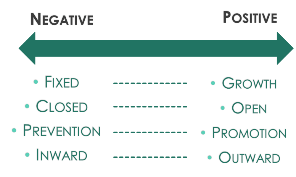 Understanding that these mindset sets rest on a continuum from negative to positive, suggests two key ideas: