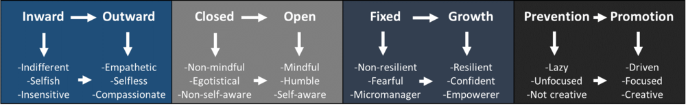 As an individual goes from having a fixed mindset to having a growth mindset, they naturally go from being non-resilient, fearful, and a micromanager to being resilient, confident, and an empowerer.