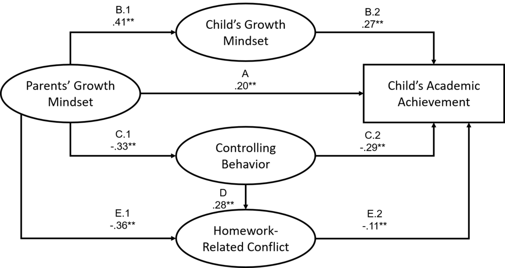 E.1. The more parents have a growth mindset, the less likely the parent and child are to have homework-related conflict