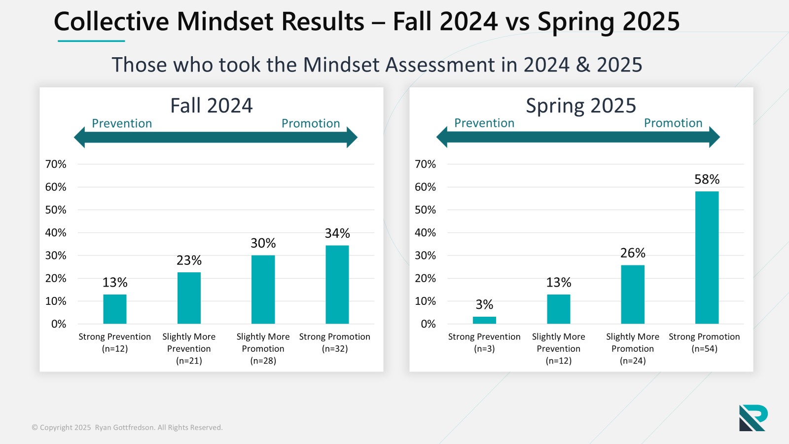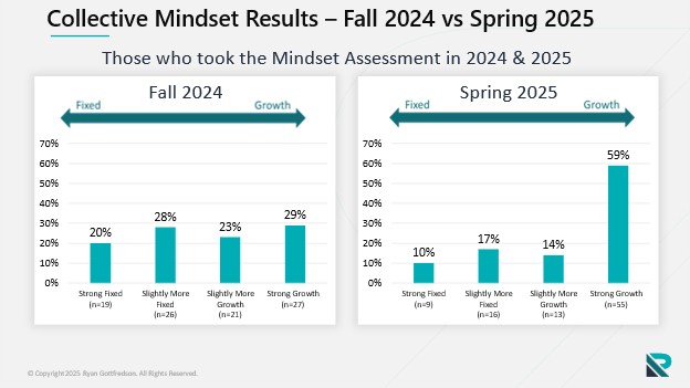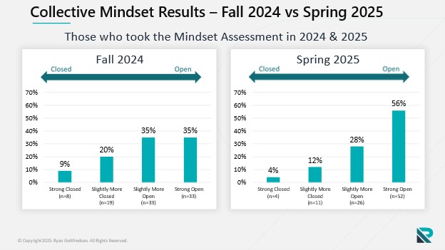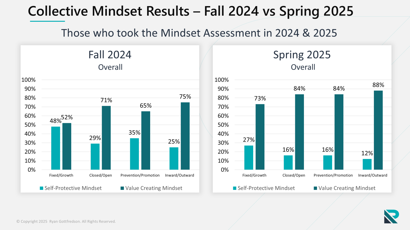 As part of that session, all 93 leaders took my Mindset Assessment, which gave them a snapshot of their current mindset profiles and allowed us to compile a collective report. That report became a mirror: revealing where the organization was strong, and where there was room for growth.