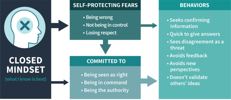 Why would someone be closed-minded? Fundamentally, it is because they believe that what they know is best. When we believe what we know is best, we are fearful of being wrong and want to be seen as right and as the authority. These fears and commitments go on to drive biased thinking, stunt learning, and stifle others.