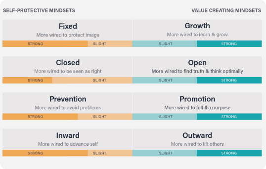 Each set contains a negative mindset and a positive mindset, each representing a pole along a continuum: