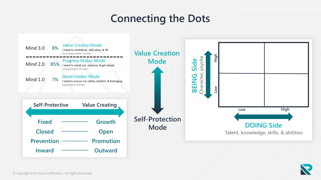 Our Being Side is the degree to which our body’s internal operating system is wired for value creation as opposed to self-protection.
